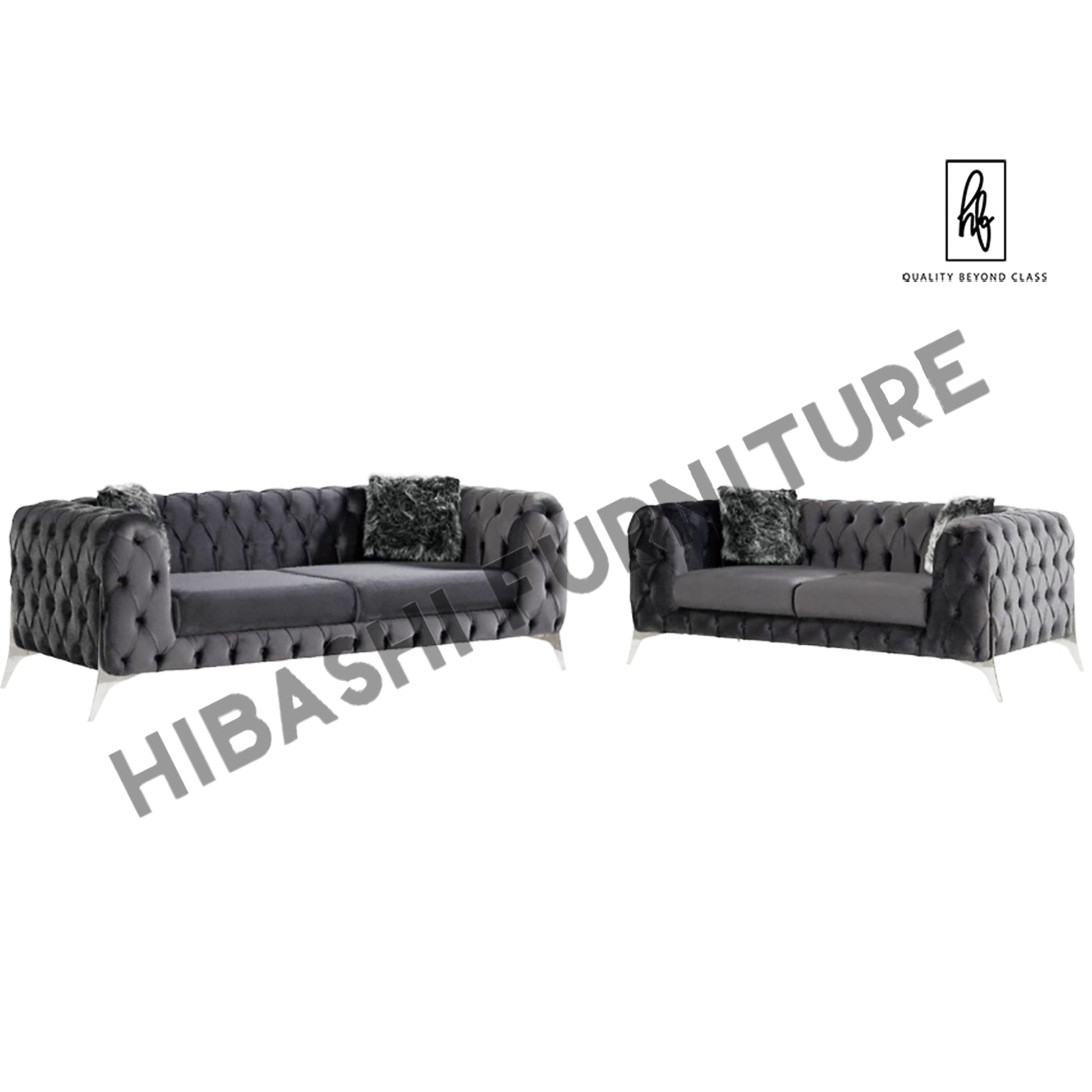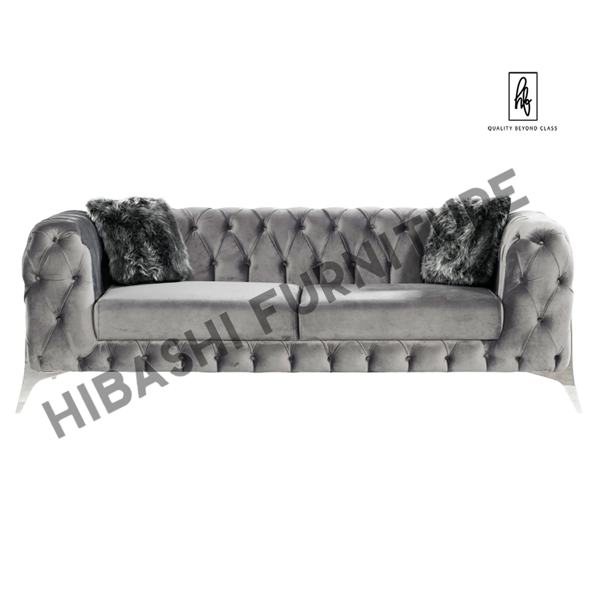 Velvet fabric brings out the glamorous features of this sofa enhancing the elegant details.