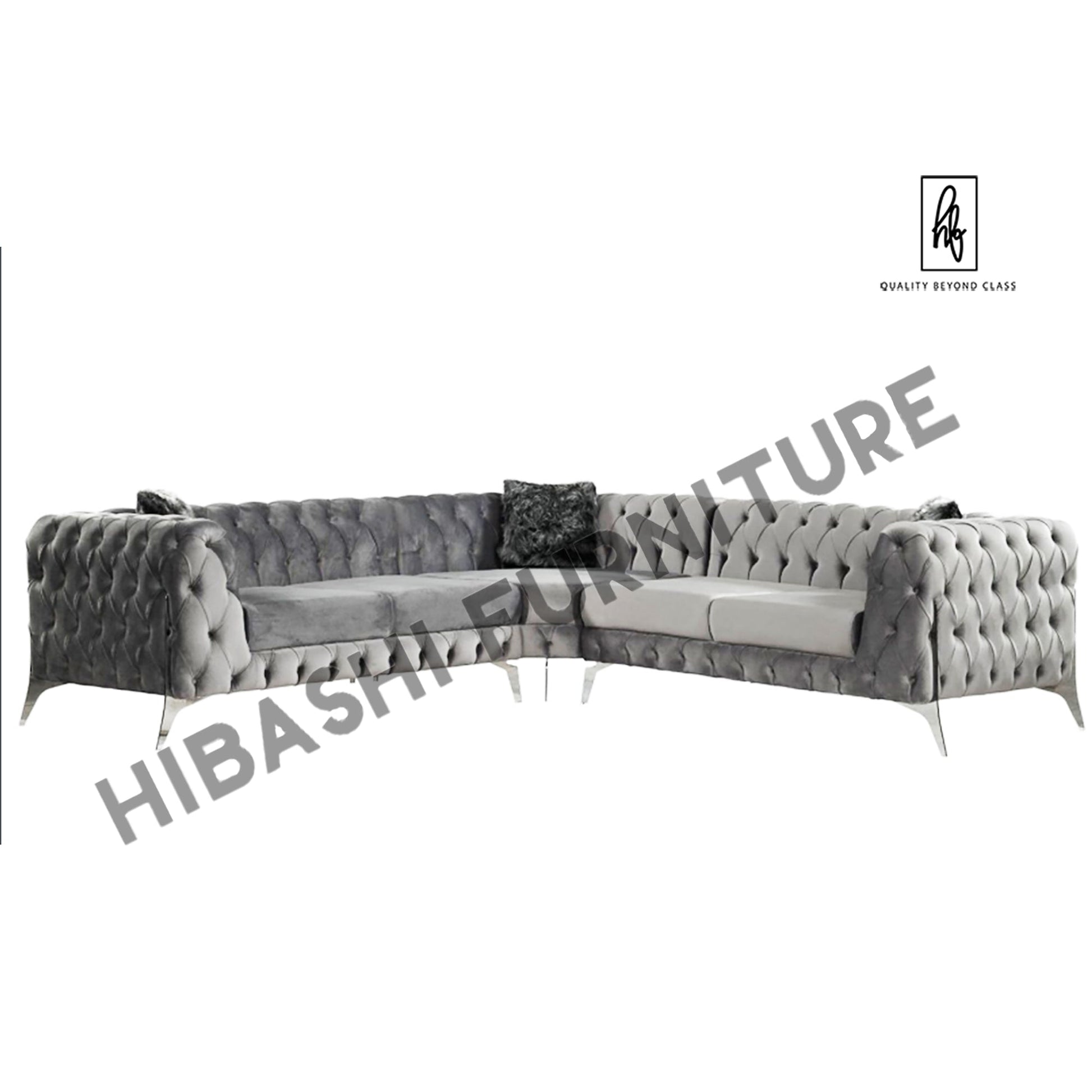 Velvet fabric brings out the glamorous features of this sofa enhancing the elegant details.