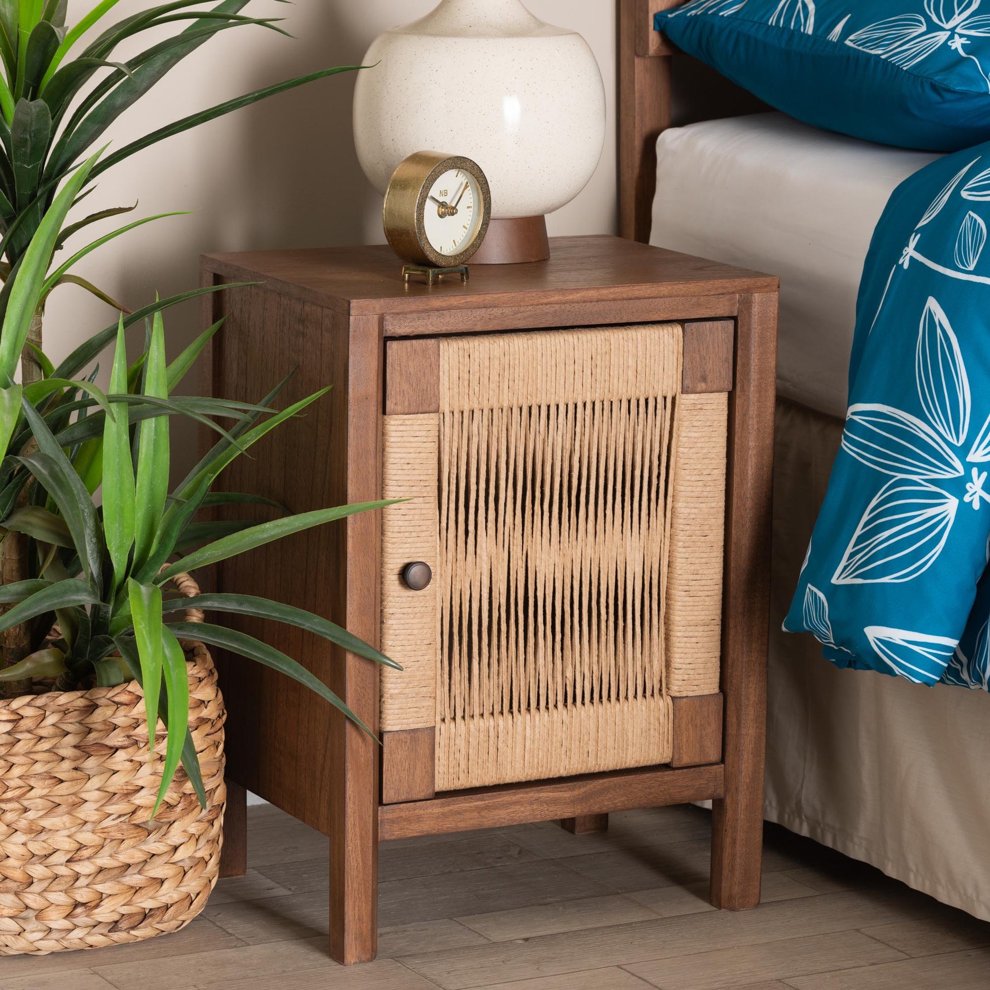 CALVIN & BAY MODERN RATTAN BOHEMIAN BROWN FINISHED WOOD NIGHTSTAND/BEDSIDE TABLE