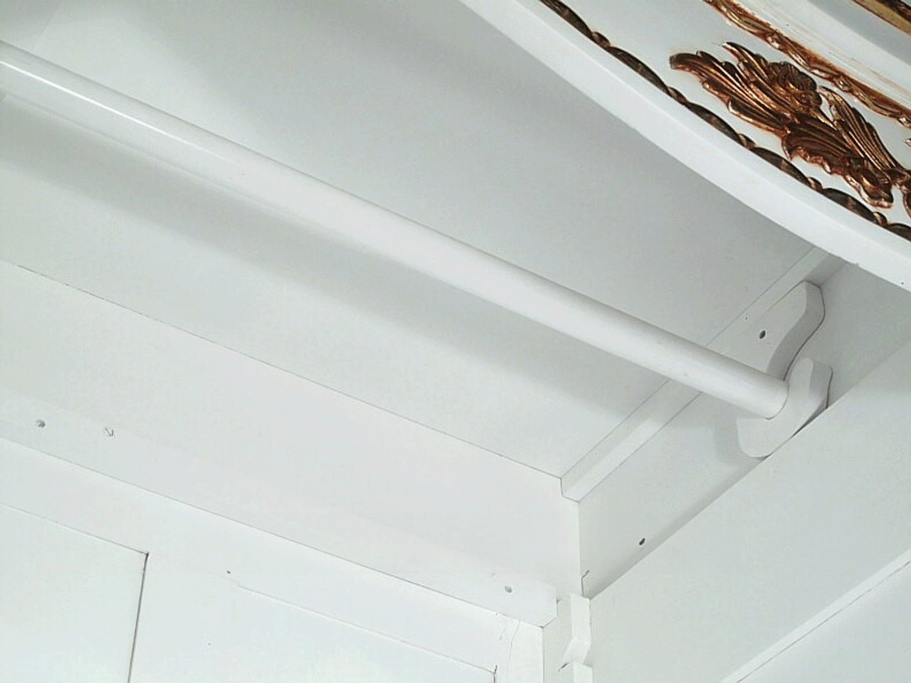 This furniture piece is made from high-quality, solid mango wood. It's crafted with care, using traditional techniques like tongue and groove, mortise, and tenon joinery. The white and gold finish add a touch of elegance. It has intricate carvings, gold accents, and decorative details like a shaped frieze and raised panels. With two doors, a lock, and brass hardware, it's both beautiful and practical, bringing a French-style charm to any room.