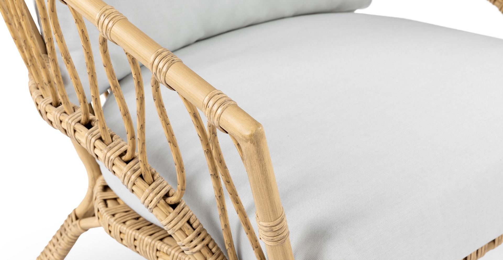 With their distinct diamond-inspired pattern, the rattan MAKO Sofa and matching lounge chairs ensure this outdoor set stands out in a crowd. Along with the plush ivory cushions, the natural-look rattan is weather-resistant and made to withstand the elements — even if you aren’t.