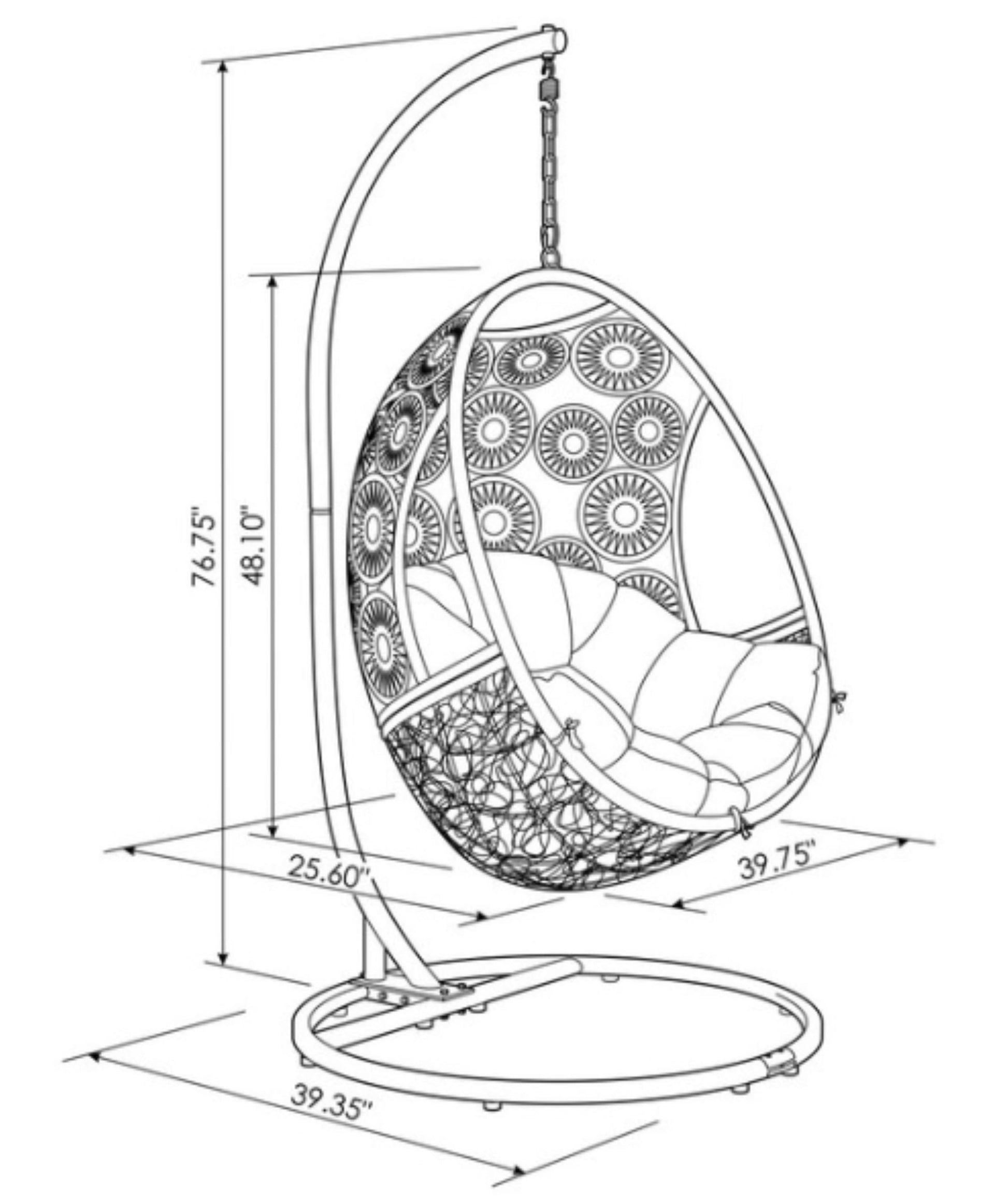 Let the Bay Swing Chair transport you to a relaxed state of mind. Meditate to transform your mind and body whenever you curl up in its spacious imitation rattan basket with padded cushion. Ideal for the modern tropical or retro homes. The swing chair is supported by a heavy steel frame. The basket is attached with a heavy duty chain that can be adjusted to accommodate a variety of seat heights most comfortable for you. If using outdoors, we recommend storing the cushions inside or covered to preserve the colors.