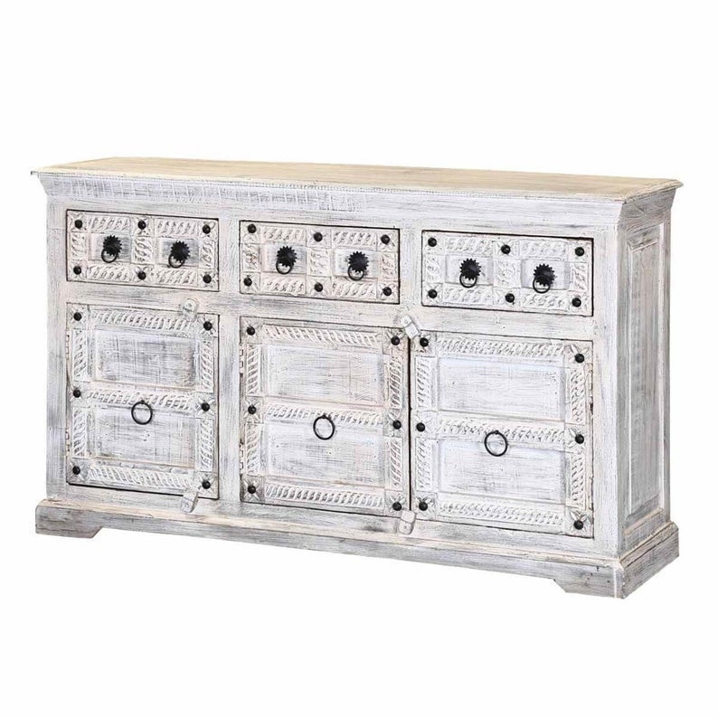 This vintage sideboard has 3 drawers and 2 cabinets. We can also Customize this beautiful piece according to your requirement in size and colors.