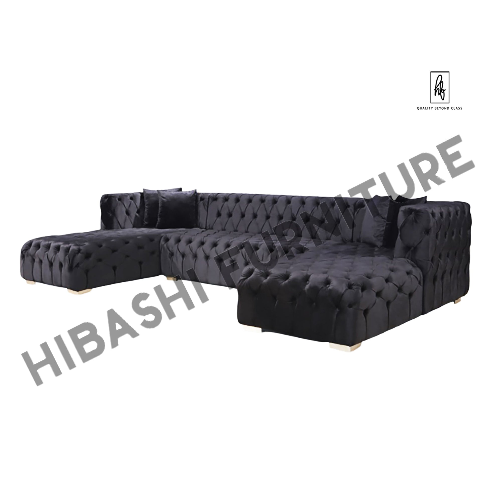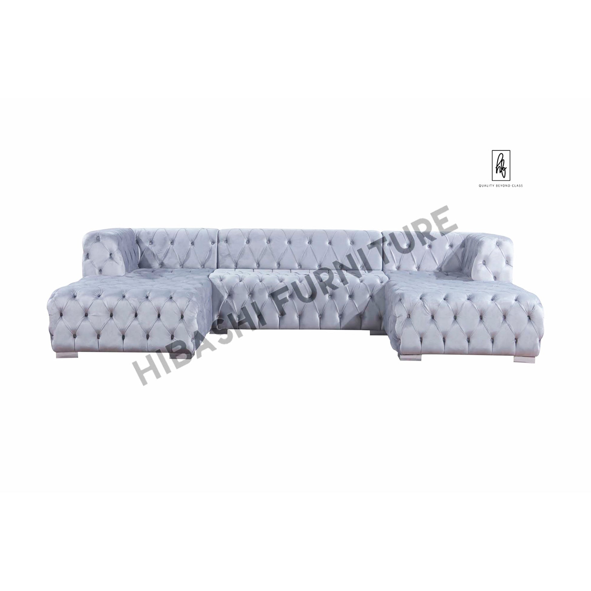 Velvet fabric brings out the glamorous features of this sofa enhancing the elegant details.