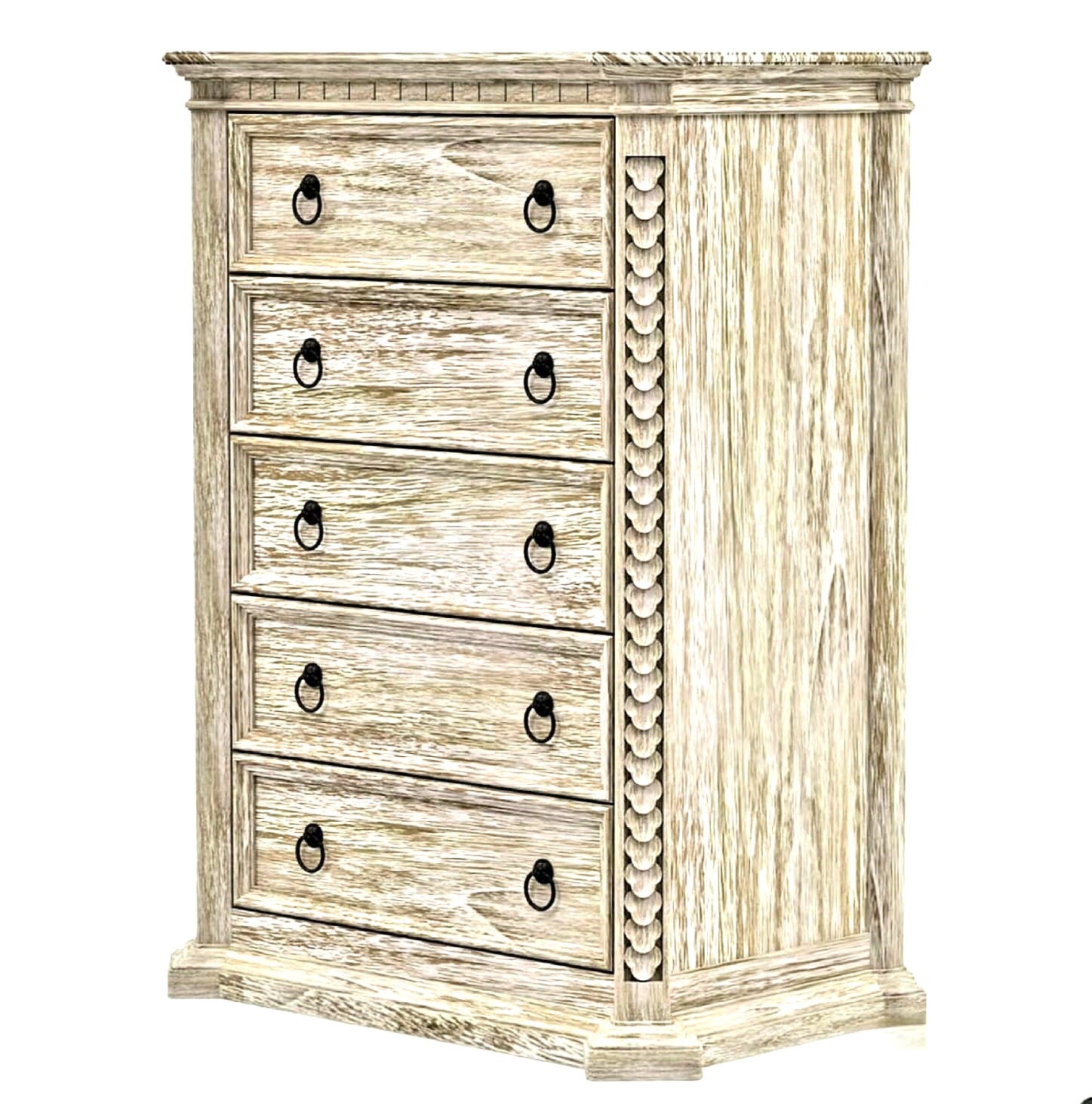 Nimbus Hand Carved Solid Wood Tall Dresser With 5 Drawers
