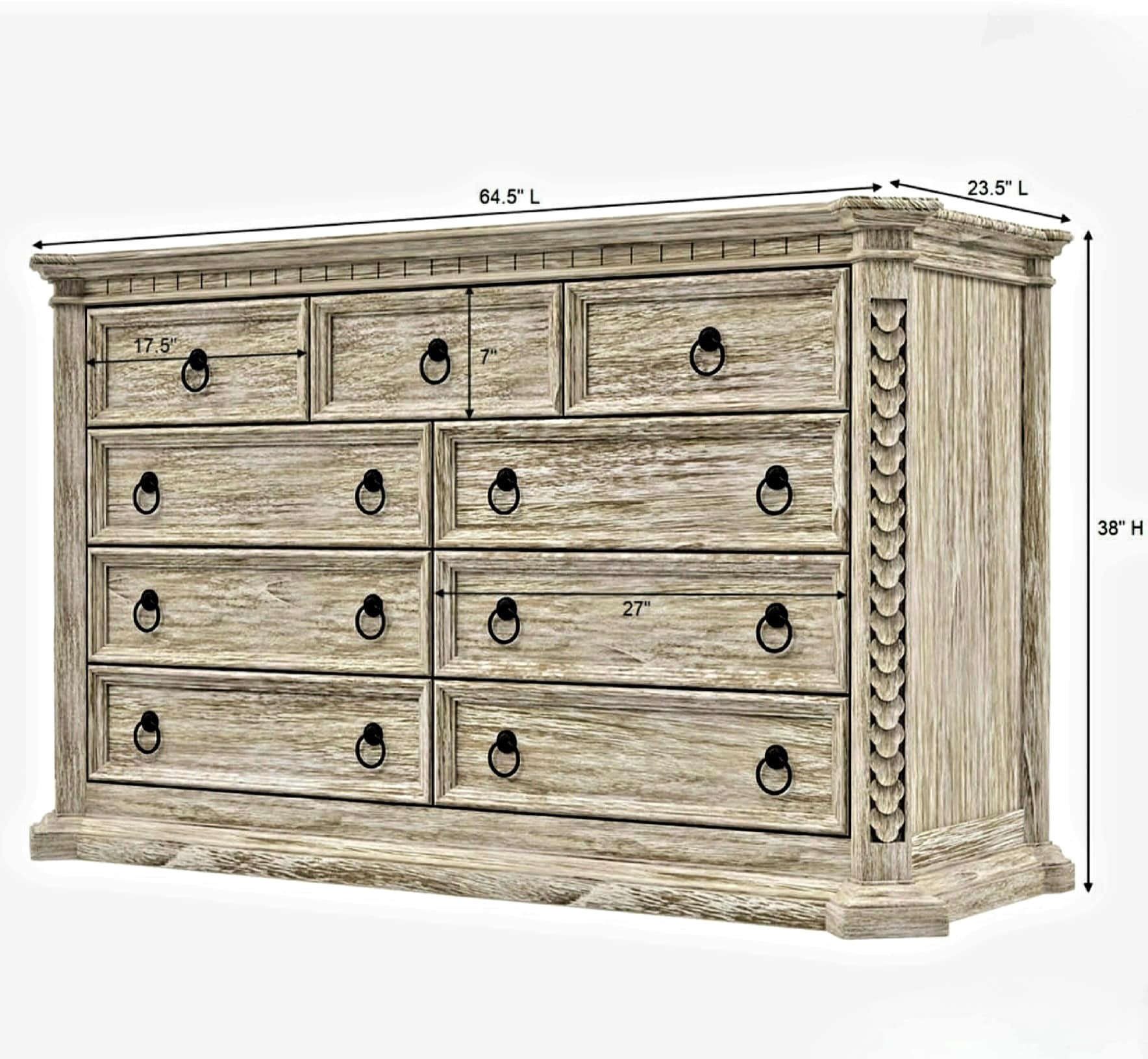 Nimbus Rustic Solid Wood Large Dresser With 9 Drawers